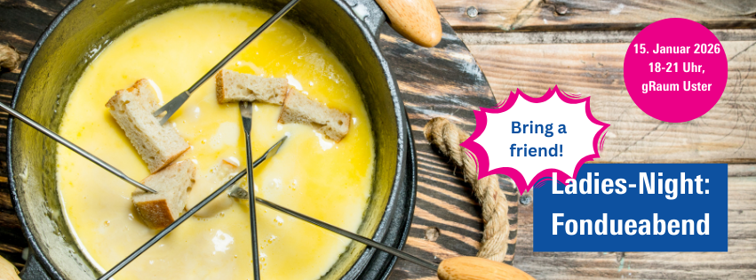 Wir haben für Dich etwas Besonderes nach dem Jahreswechsel vorbereitet. Am Donnerstag, 15. Januar 2026, von 18 Uhr bis 21 Uhr laden wir alle weiblichen Mitglieder, Partnerinnen von Mitgliedern und ihre Freundinnen herzlich zu einem gemütlichen Fondueabend im gRaum an der Florastrasse 49 in Uster ein.